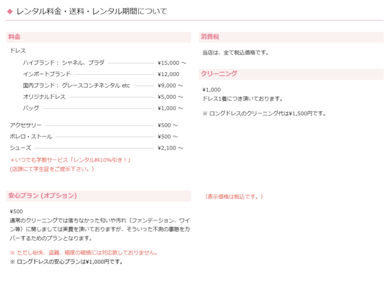 アイテムのレンタル料の他にクリーニング代が必要になります。